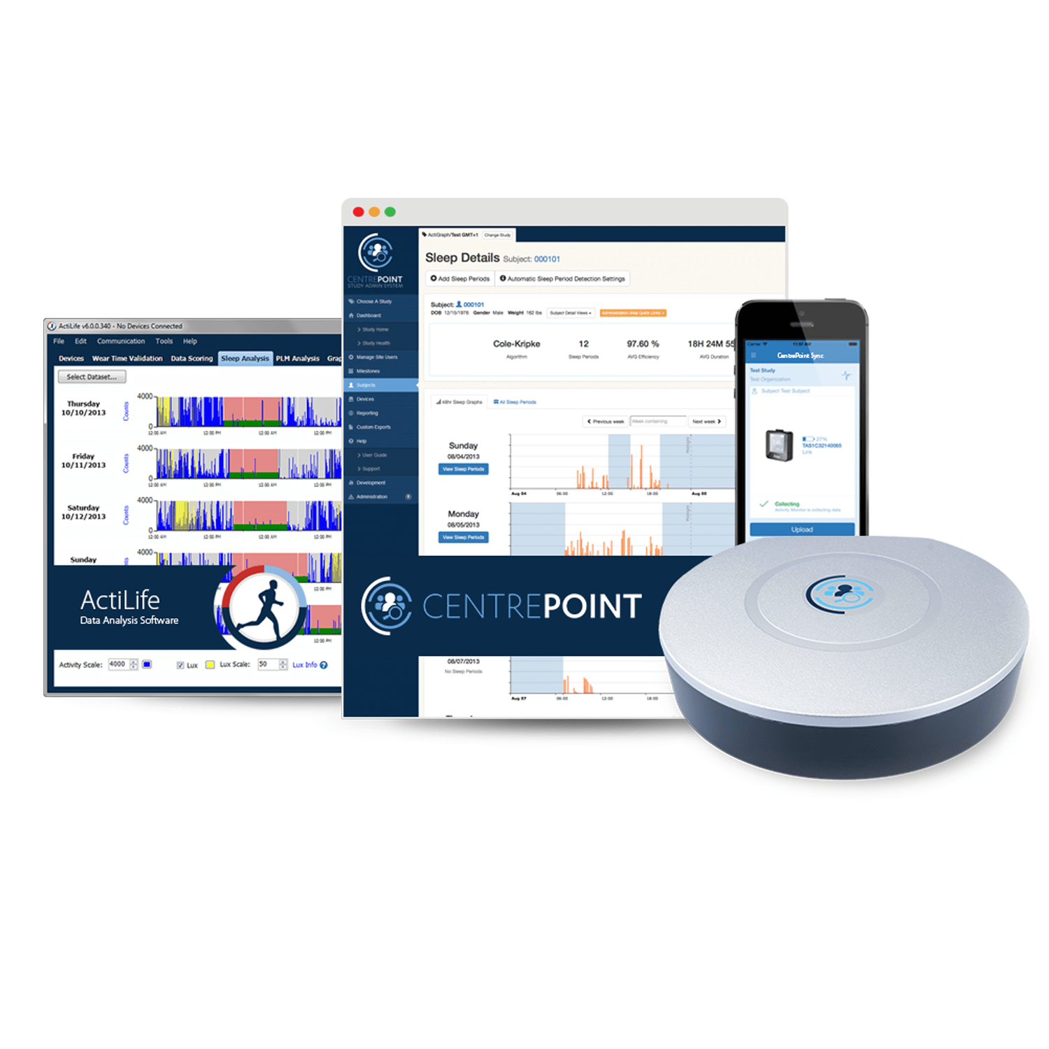 The CentrePoint Insight Watch captures and records high resolution raw acceleration data, which are converted into a variety of objective activity and sleep measures using publicly available algorithms that were developed and validated by members of the academic research community. Available measures include: