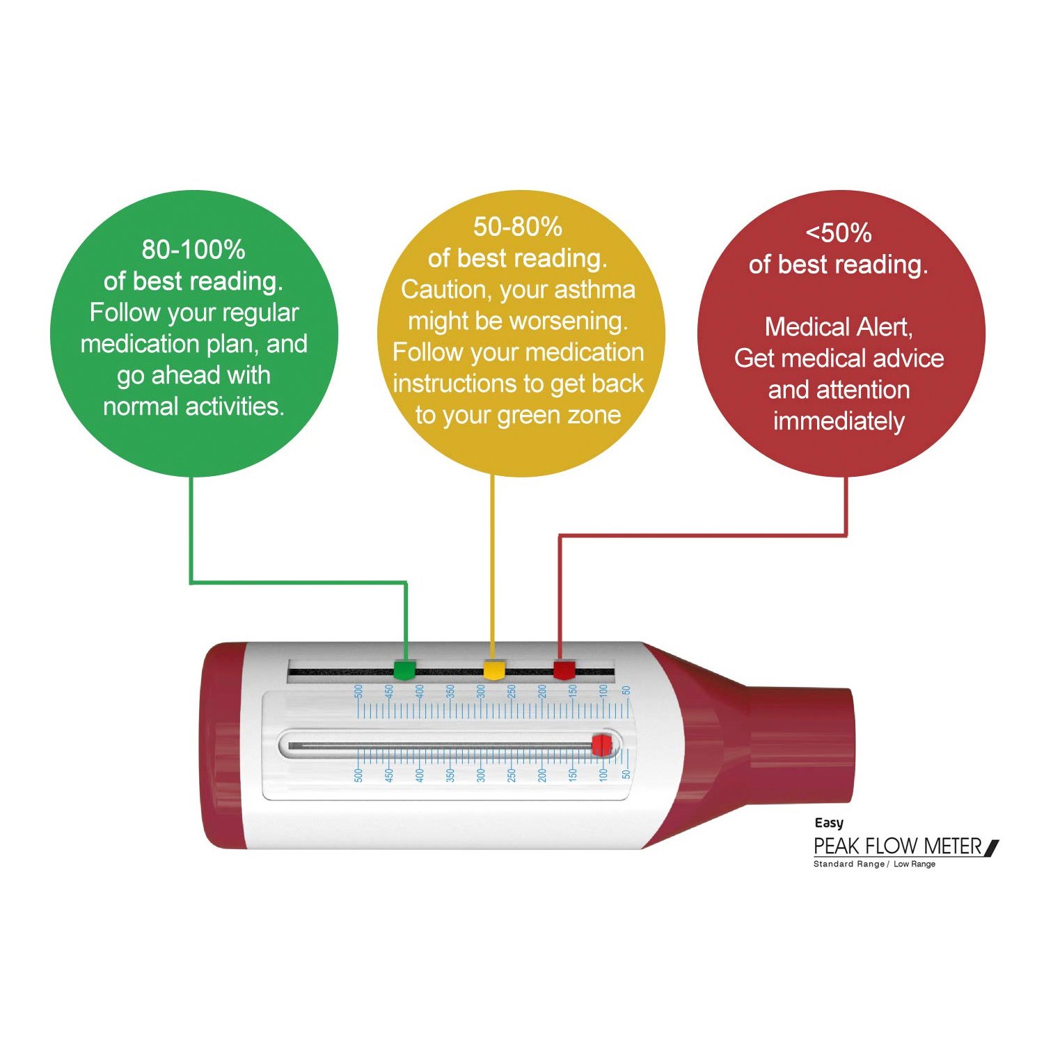A Peak Flow Meter measures air flowing out of the lungs and can reveal narrowing of airways well in advance of an asthma attack.