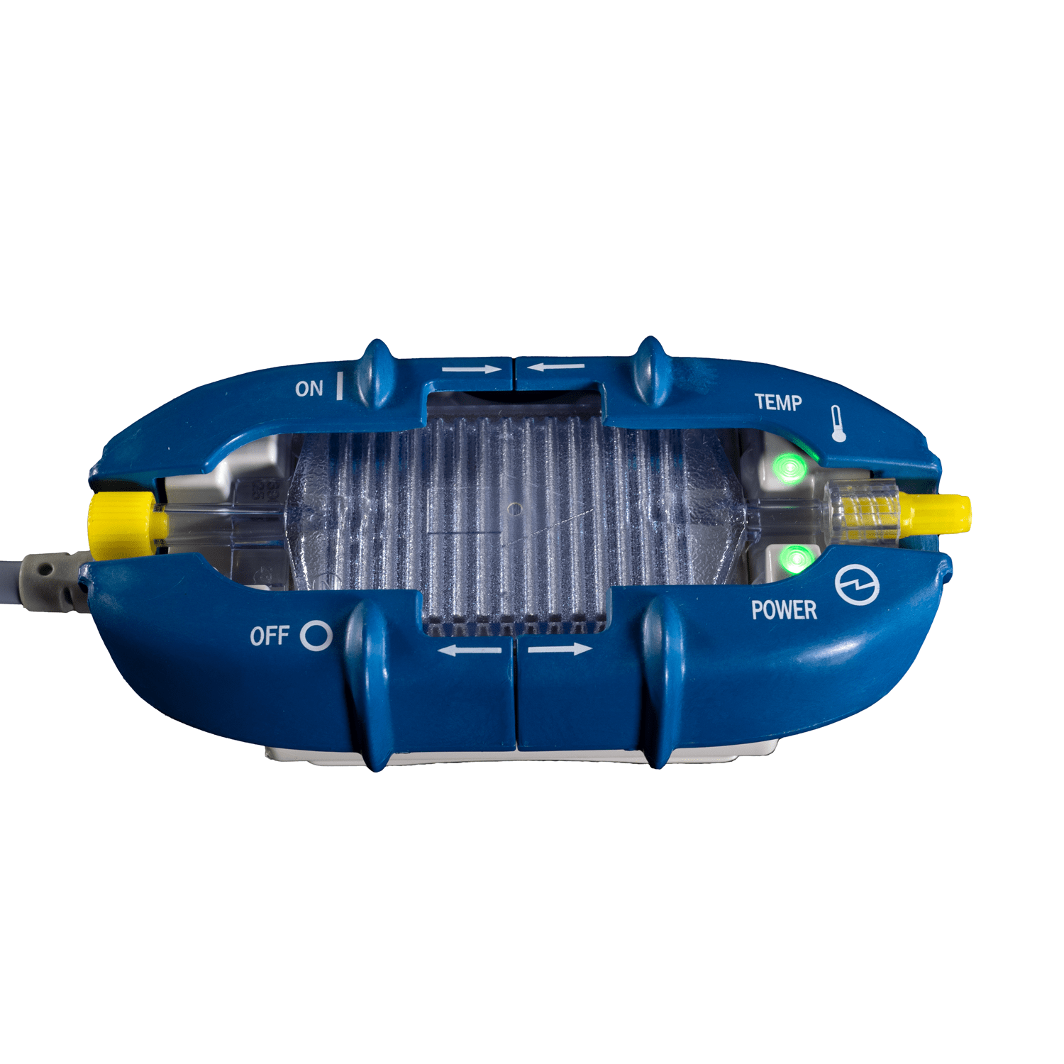The small single-patient-use cartridge remains in-line for continous patient warming, across the care continuum