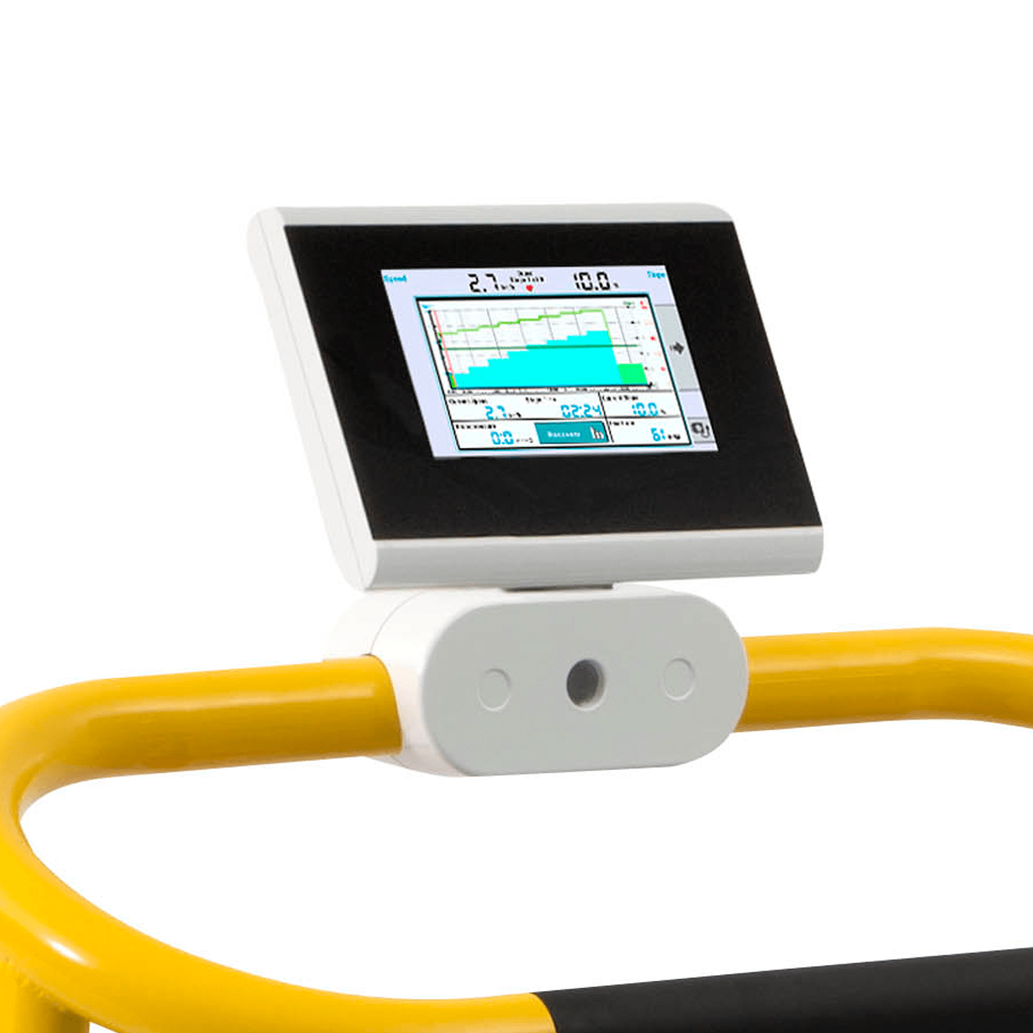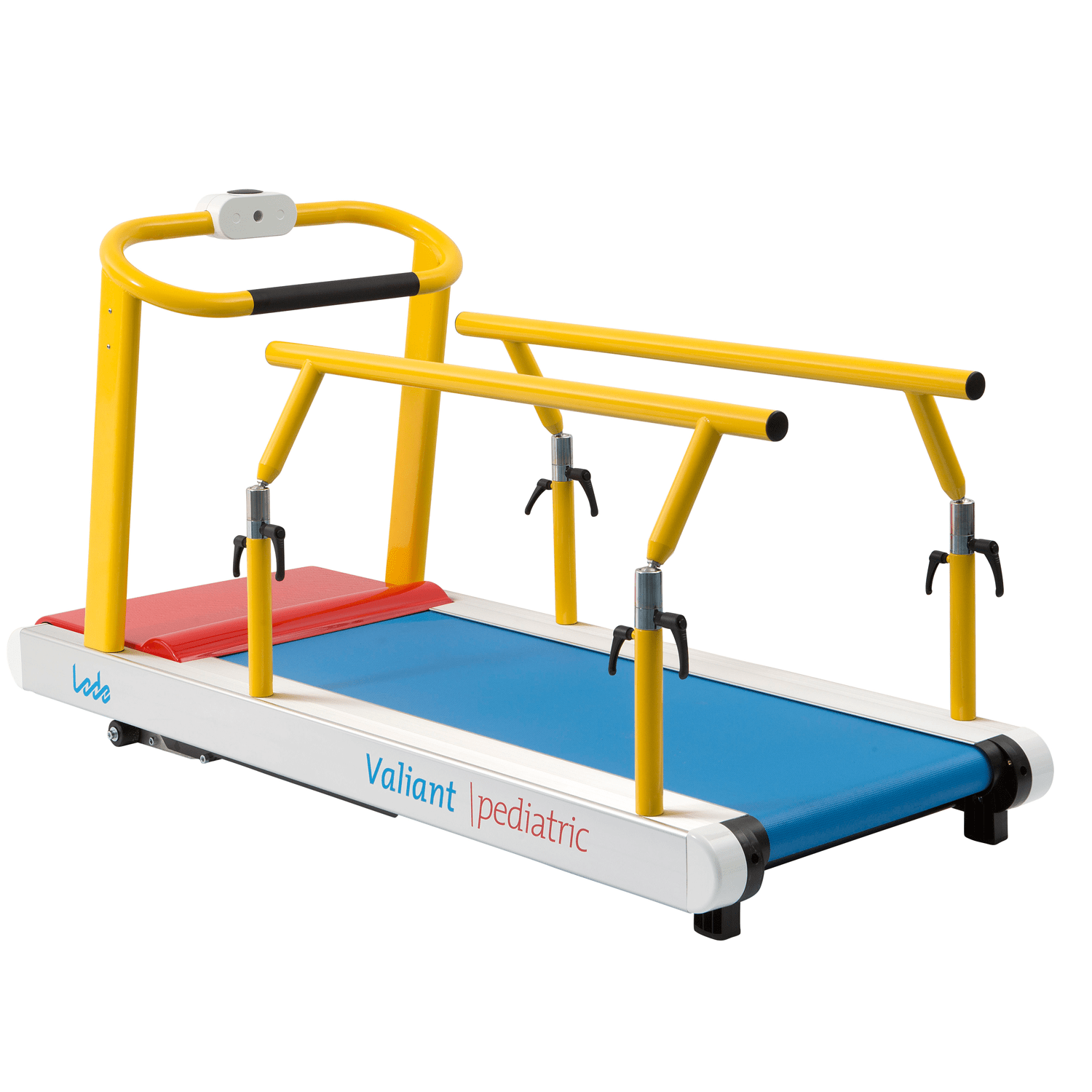 Modern designed treadmill specifically designed for children. It can be controlled by external ECG and pulmonary devices. The emergency stop magnet contact on the standard front handrail provides additional safety for the user. The Valiant 2 Pediatric offers a smooth acceleration from 0 km/h and is continuously adjustable in a range of 0,1 – 12 km/h (0.06 – 7.5 mph). The running surface is 50 x 127 cm and the standard elevation is 0 – 25%. This treadmill is supplied without any display.