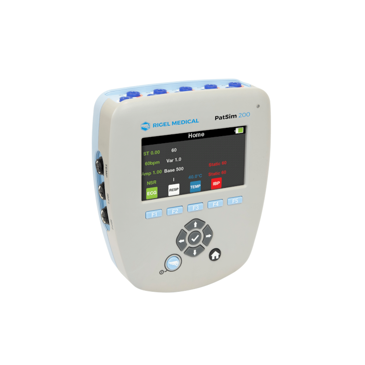 The PatSim 200 from Rigel was designed to make every patient simulation quicker. Unlike other Patient Simulators, the PatSim uses a home and recall function to easily move between tests and store your most used sequences, no more clicking and scrolling through ‘tree style’ hierarchy to perform each test. Some of the most unique features include: