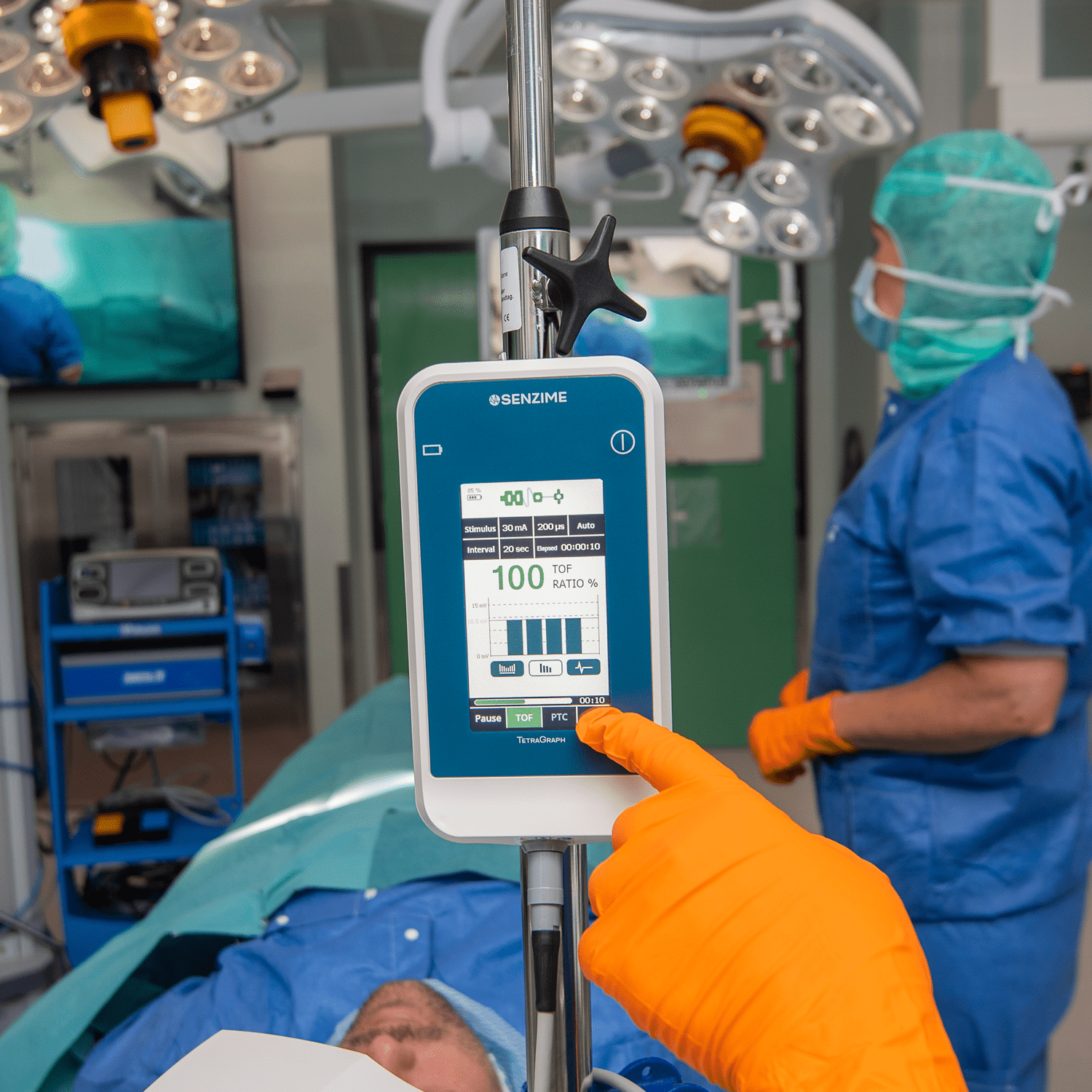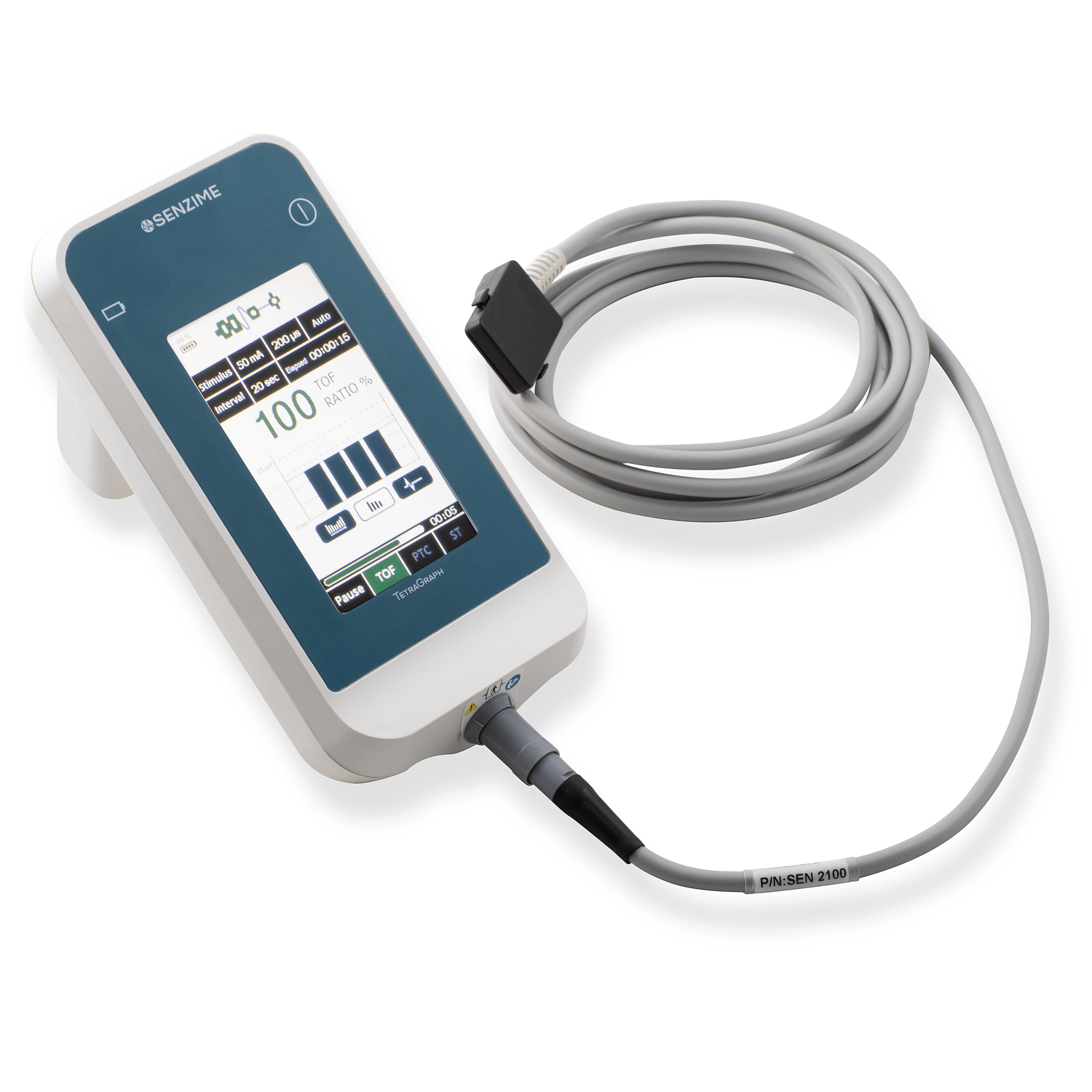 TetraGraph is a quantitative neuromuscular transmission monitor based on electromyography (EMG). The TetraGraph monitor stimulates, measures, analyzes and displays muscle function in surgical patients receiving neuromuscular blocking agents (NMBAs). NMBAs are used in almost 50% of surgical cases. Inadequate reversal of NMBAs can lead to residual neuromuscular blockade (RNMB). RNMB delays recovery and can lead to life-threatening complications. To prevent complications, quantitative neuromuscular monitoring is rapidly becoming the standard of care when NMBAs are administered.